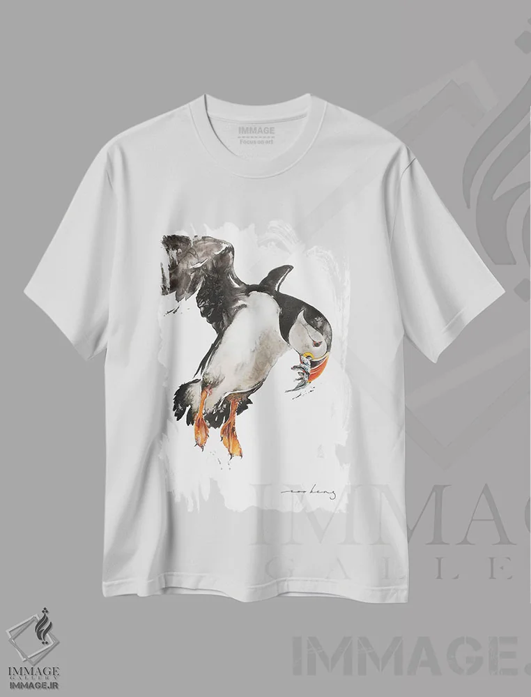 تیشرت سفید طرح دار بار ماهی مرغ دریایی، دکور معاصر اثر سو بنگ لیم | فروشگاه ایماژ تیشرت طرح دار بار ماهی مرغ دریایی اثر سو بنگ لیم