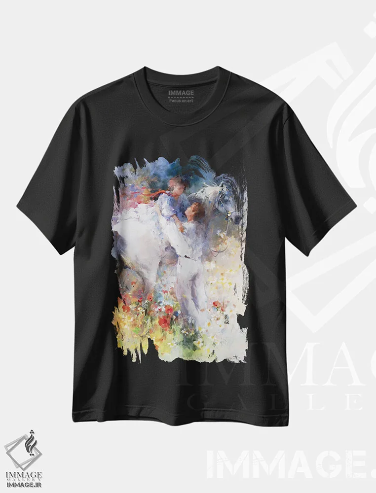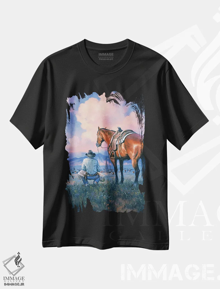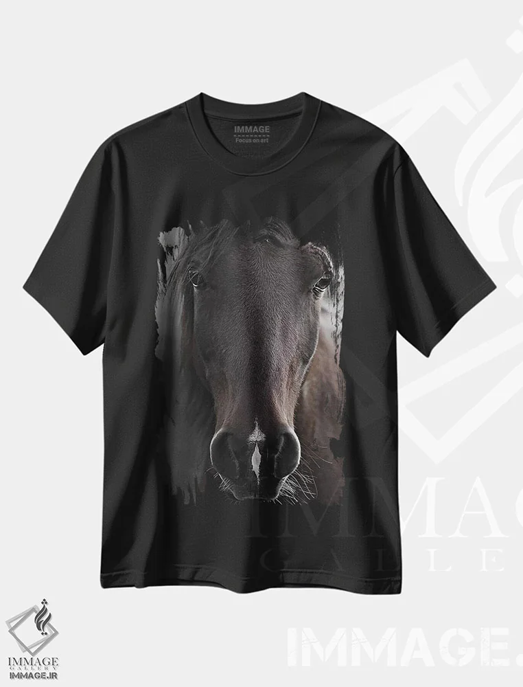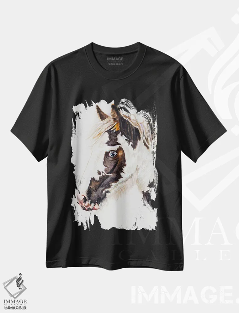 تیشرت مشکی طرح دار مادیان وحشی، دکور معاصر اثر جن فارل | فروشگاه ایماژ تیشرت طرح دار مادیان وحشی اثر جن فارل