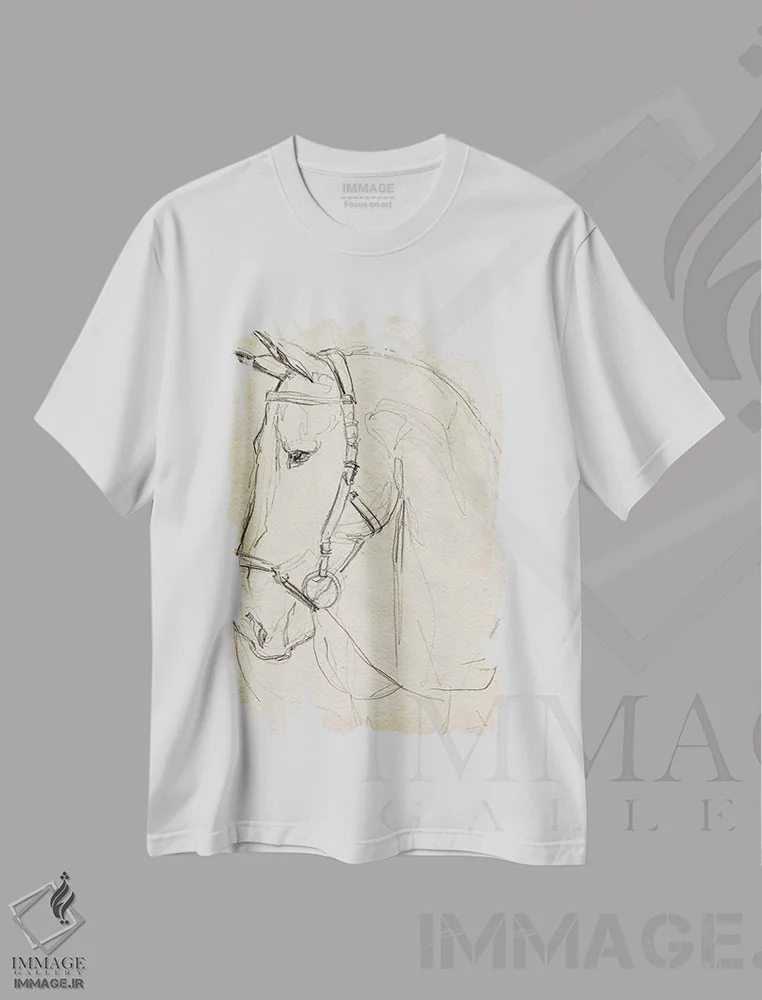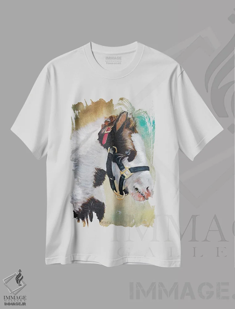 تیشرت سفید طرح دار اسب با مهار به صورت طراحی ۲، دکور معاصر اثر جنیفر پکستون پارکر | فروشگاه ایماژ تیشرت طرح دار اسب با مهار به صورت طراحی اثر جنیفر پکستون پارکر