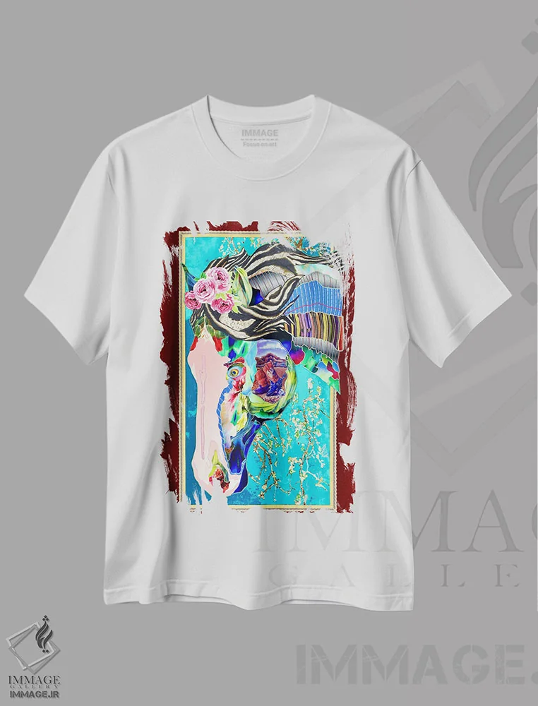 تیشرت سفید طرح دار حقیقی، هنر فاخر معاصر اثر لیزا باترز | فروشگاه ایماژ تیشرت طرح دار حقیقی اثر لیزا باترز