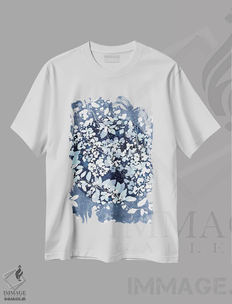 تیشرت سفید طرح دار برف ماه نو، دکور معاصر اثر کریتیو اینگرید | فروشگاه ایماژ تیشرت طرح دار برف ماه نو اثر کریتیو اینگرید