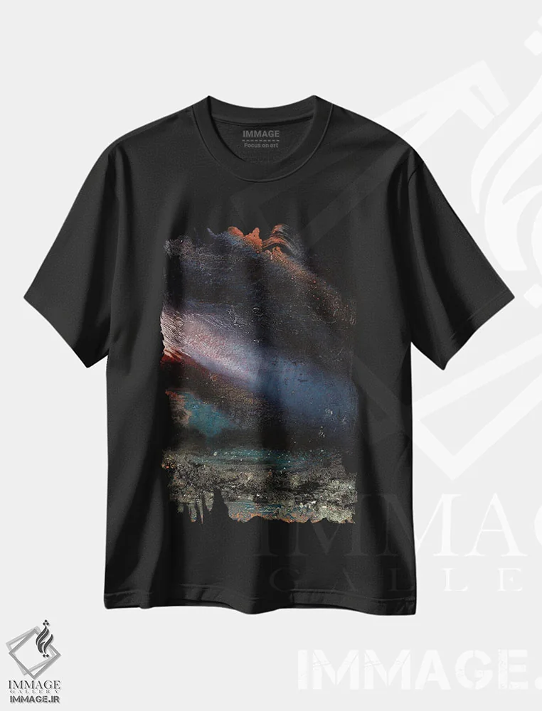 تیشرت مشکی طرح دار شفق ۲، آبستره اثر مینگ فرانز | فروشگاه ایماژ تیشرت طرح دار شفق اثر مینگ فرانز
