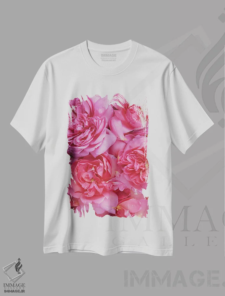 تیشرت طرح دار گلبرگ های رز انگلیسی صورتی دو اثر آلیسون فنل