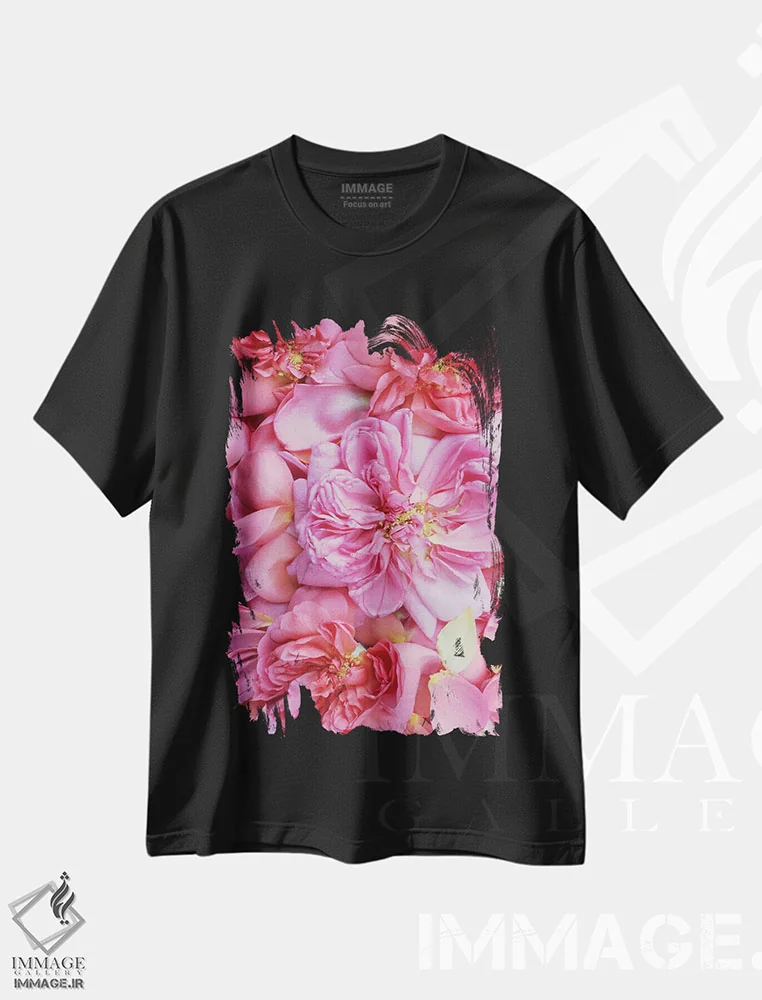تیشرت مشکی طرح دار نرگس چارم صورتی، مدیوم اثر آلیسون فنل | فروشگاه ایماژ