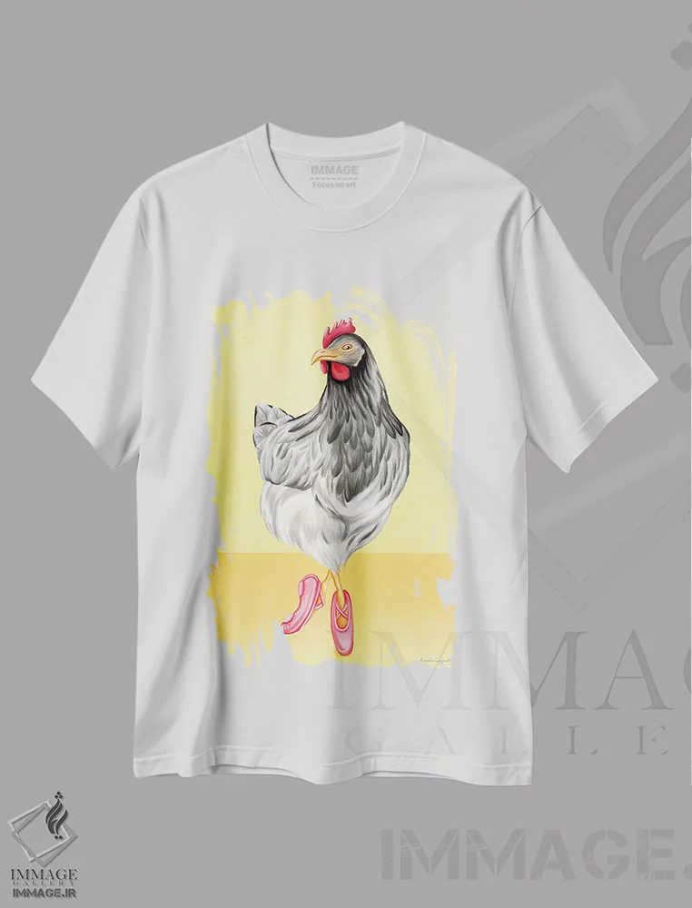 تیشرت سفید طرح دار مرغ رقصنده باله، تزئینی اثر آملی لگو | فروشگاه ایماژ تیشرت طرح دار مرغ رقصنده باله اثر آملی لگو