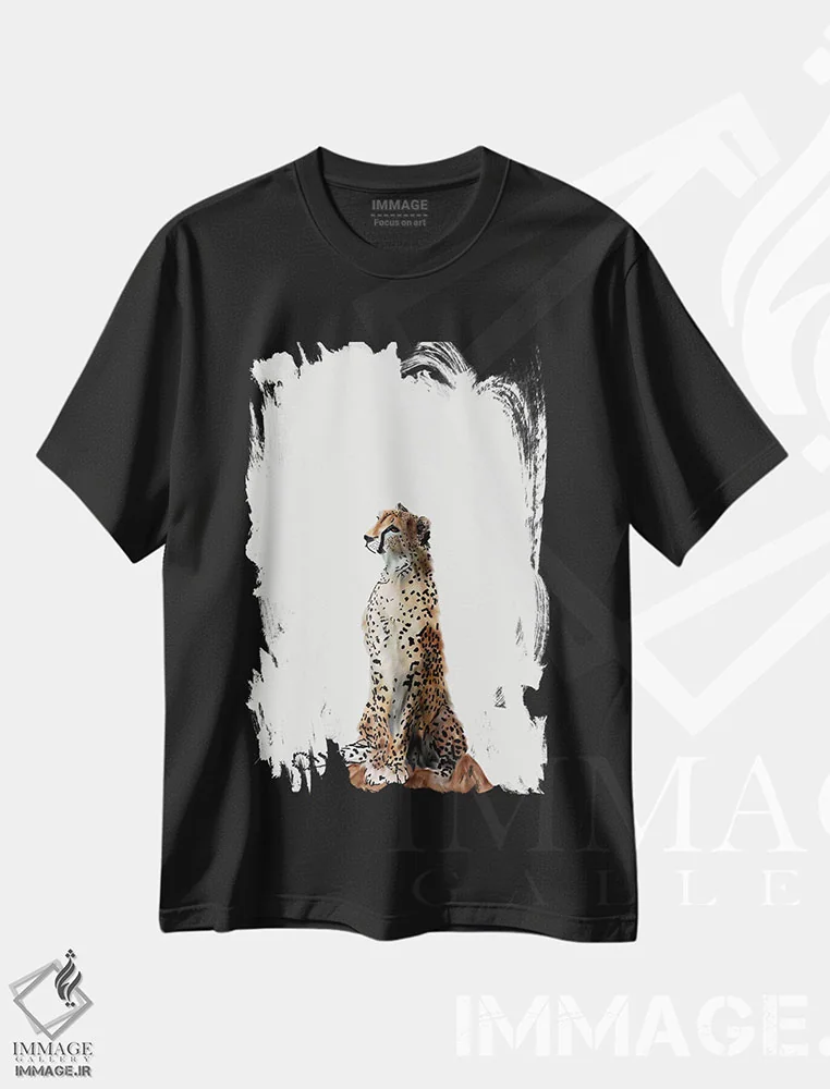 تیشرت مشکی طرح دار یوزپلنگ، تزئینی اثر آملیا نویز | فروشگاه ایماژ تیشرت طرح دار یوزپلنگ اثر آملیا نویز