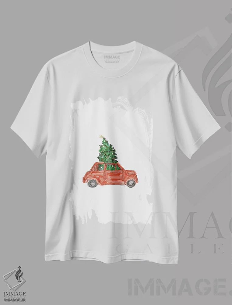 تیشرت سفید طرح دار ماشین و درخت کریسمس، تزئینی اثر آملیا نویز | فروشگاه ایماژ تیشرت طرح دار ماشین و درخت کریسمس اثر آملیا نویز