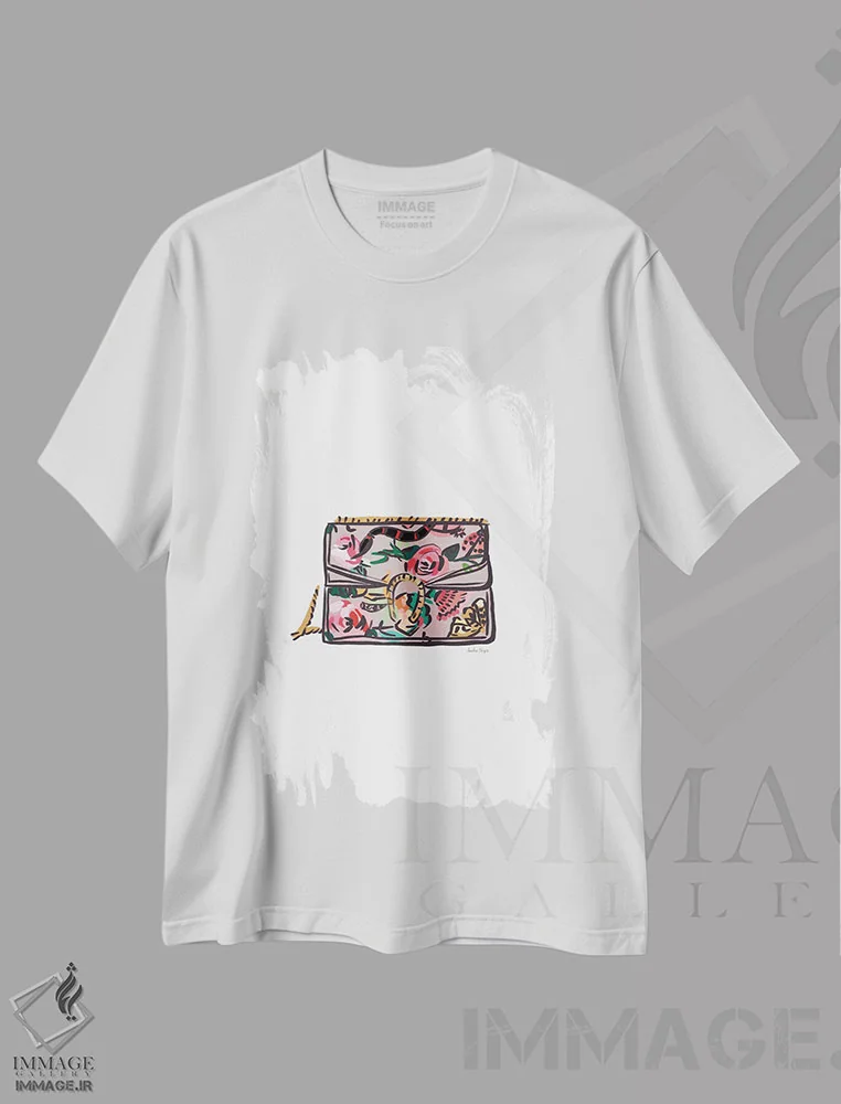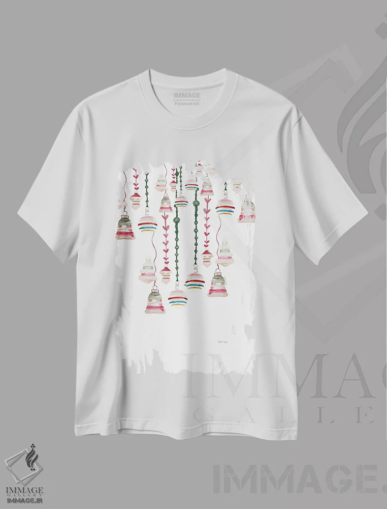تیشرت سفید طرح دار تزئینات، تزئینی اثر آملیا نویز | فروشگاه ایماژ تیشرت طرح دار تزئینات اثر آملیا نویز