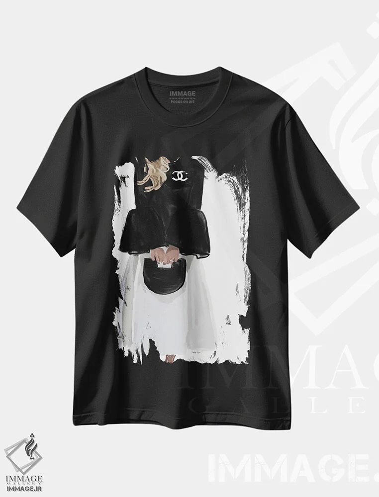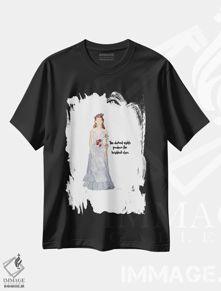 تیشرت مشکی طرح دار شب مُد، تزئینی اثر آملیا نویز | فروشگاه ایماژ تیشرت طرح دار شب مُد اثر آملیا نویز