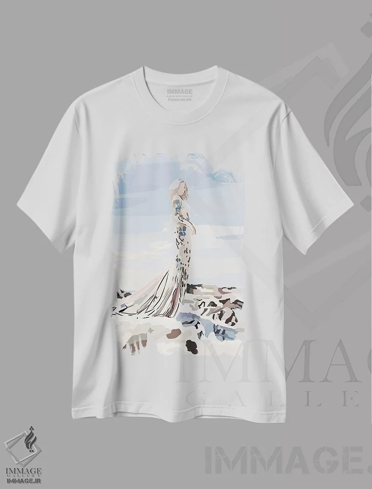 تیشرت سفید طرح دار دختر اقیانوسی مد، تزئینی اثر آملیا نویز | فروشگاه ایماژ تیشرت طرح دار دختر اقیانوسی مد اثر آملیا نویز