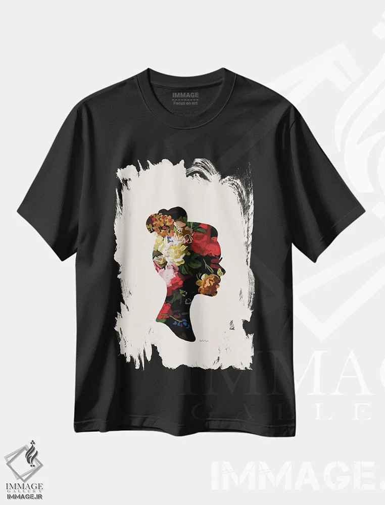 تیشرت مشکی طرح دار سر با گل III، تزئینی اثر آملیا نویز | فروشگاه ایماژ تیشرت طرح دار سر با گل III اثر آملیا نویز