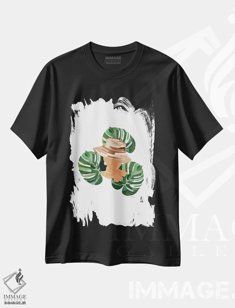 تیشرت مشکی طرح دار بانویی با نخل ها I، تزئینی اثر آملیا نویز | فروشگاه ایماژ تیشرت طرح دار بانویی با نخل ها I اثر آملیا نویز