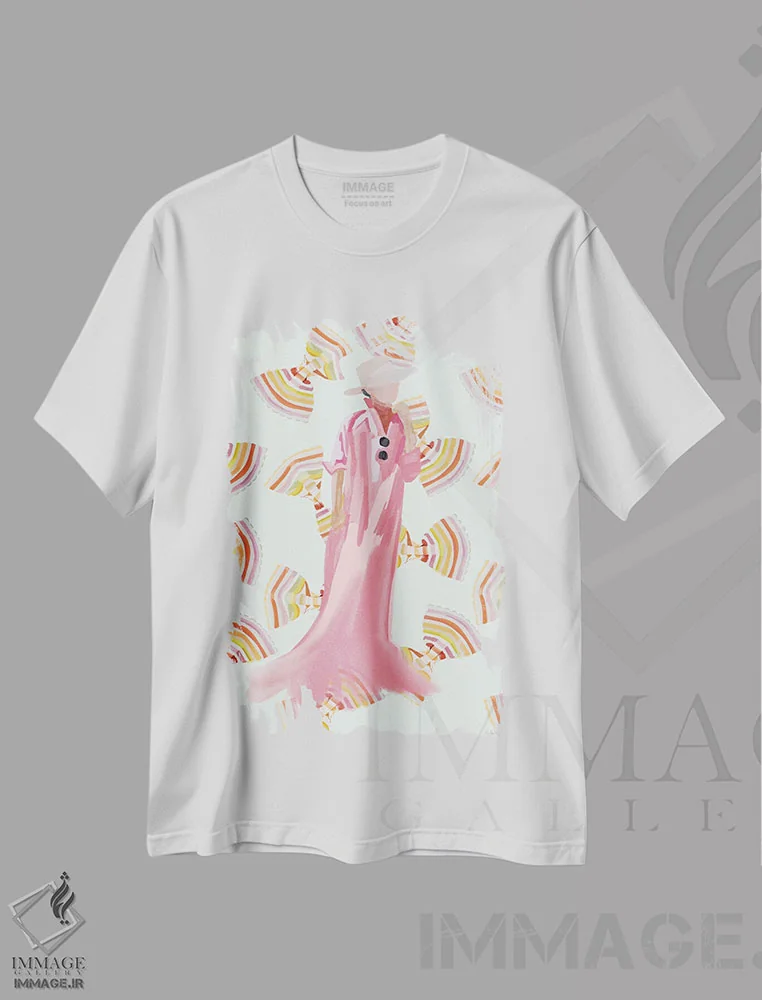 تیشرت سفید طرح دار رویاهای صورتی، تزئینی اثر آملیا نویز | فروشگاه ایماژ تیشرت طرح دار رویاهای صورتی اثر آملیا نویز