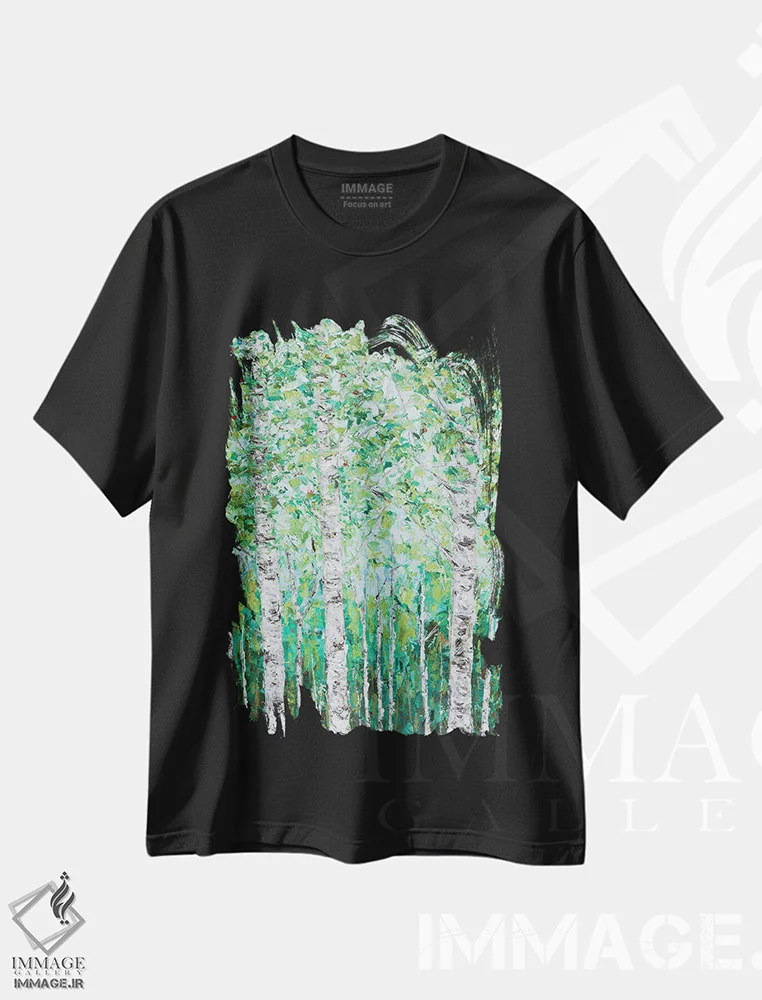 تیشرت مشکی طرح دار چوب غان سبز I، مدیوم اثر آن مری کولیک | فروشگاه ایماژ تیشرت طرح دار چوب غان سبز I اثر آن مری کولیک