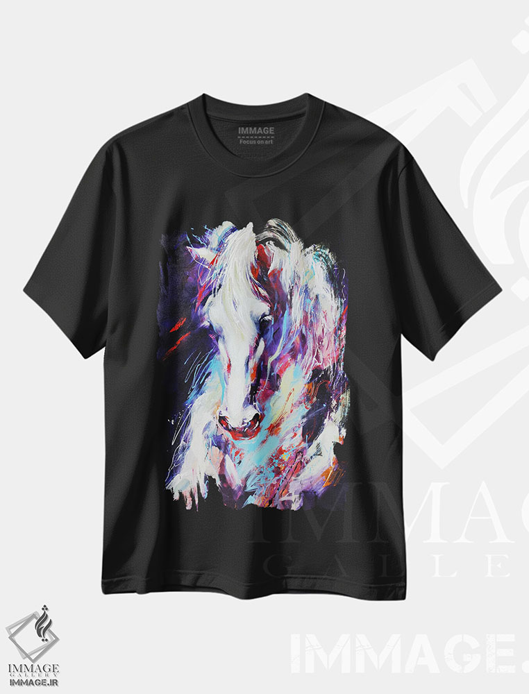 تیشرت طرح دار اسب دوانی، دکور معاصر اثر آنا چر | فروشگاه ایماژ