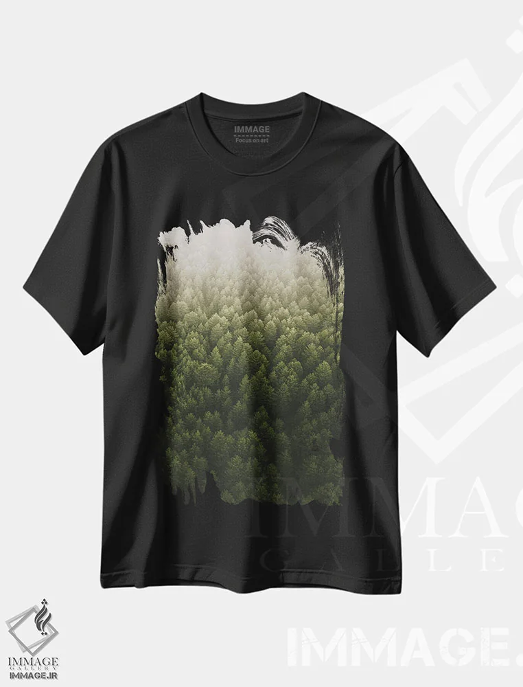 تیشرت مشکی طرح دار درختان کاج، عکاسی هوایی اثر آندریا کاروزو | فروشگاه ایماژ تیشرت طرح دار درختان کاج اثر آندریا کاروزو
