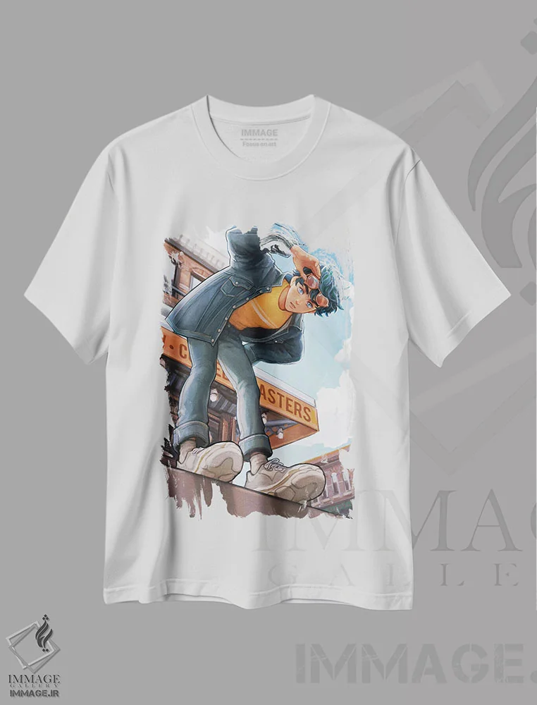 تیشرت سفید طرح دار از پایه تا اوج، هنر دیجیتال اثر آیوی دولامور | فروشگاه ایماژ