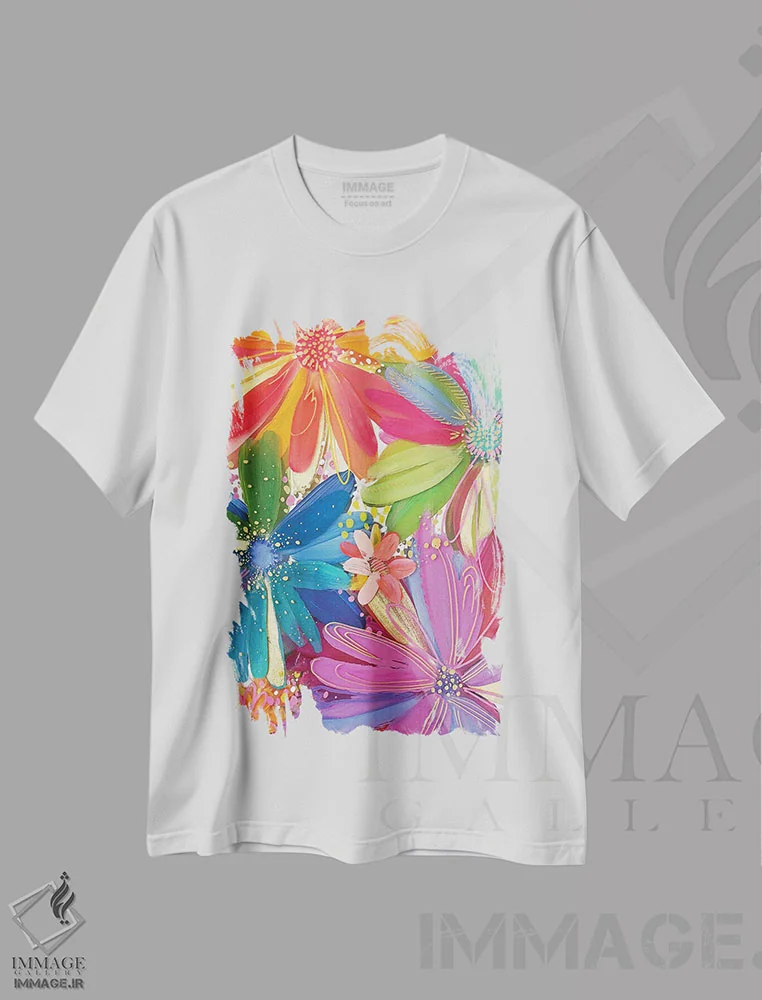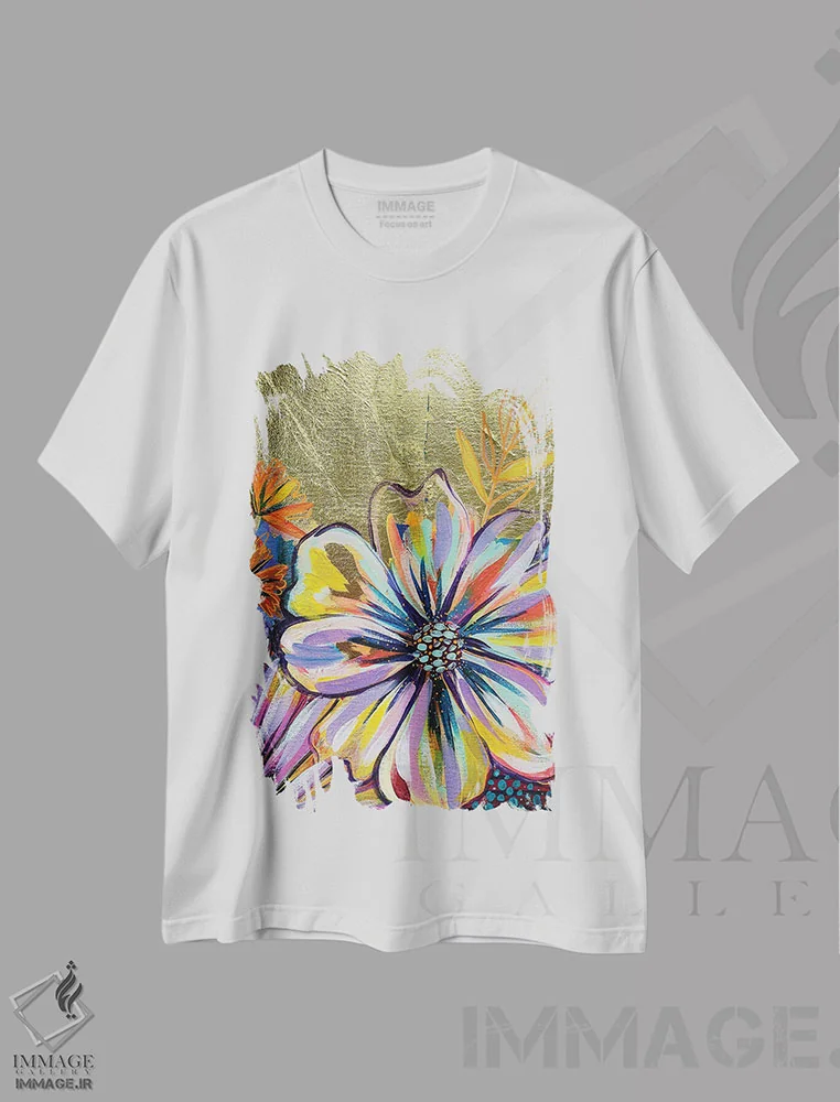 تیشرت سفید طرح دار گل ها روی شیشه I، مدیوم اثر اتاوی | فروشگاه ایماژ تیشرت طرح دار گل ها روی شیشه I اثر اتاوی