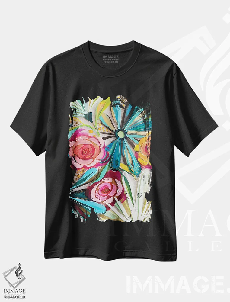 تیشرت مشکی طرح دار گل ها روی شیشه II، مدیوم اثر اتاوی | فروشگاه ایماژ تیشرت طرح دار گل ها روی شیشه II اثر اتاوی
