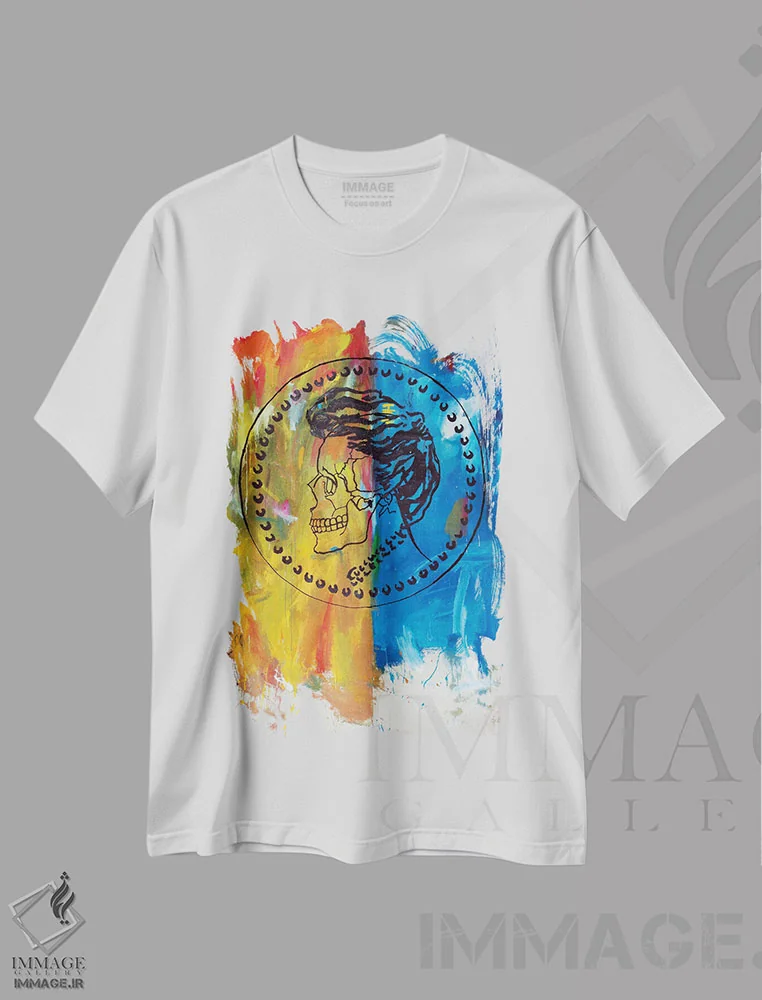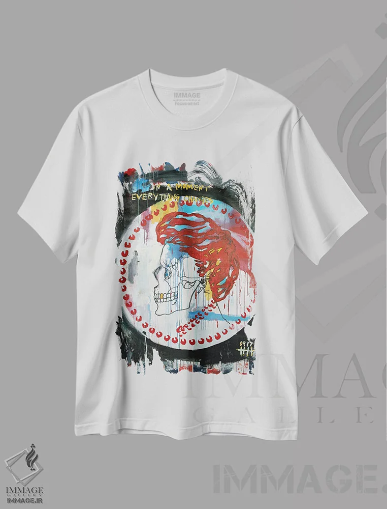 تیشرت سفید طرح دار جمجمهٔ ۲۲، دکوراسیون جایگزین اثر اددی لاو | فروشگاه ایماژ تیشرت طرح دار جمجمهٔ اثر اددی لاو