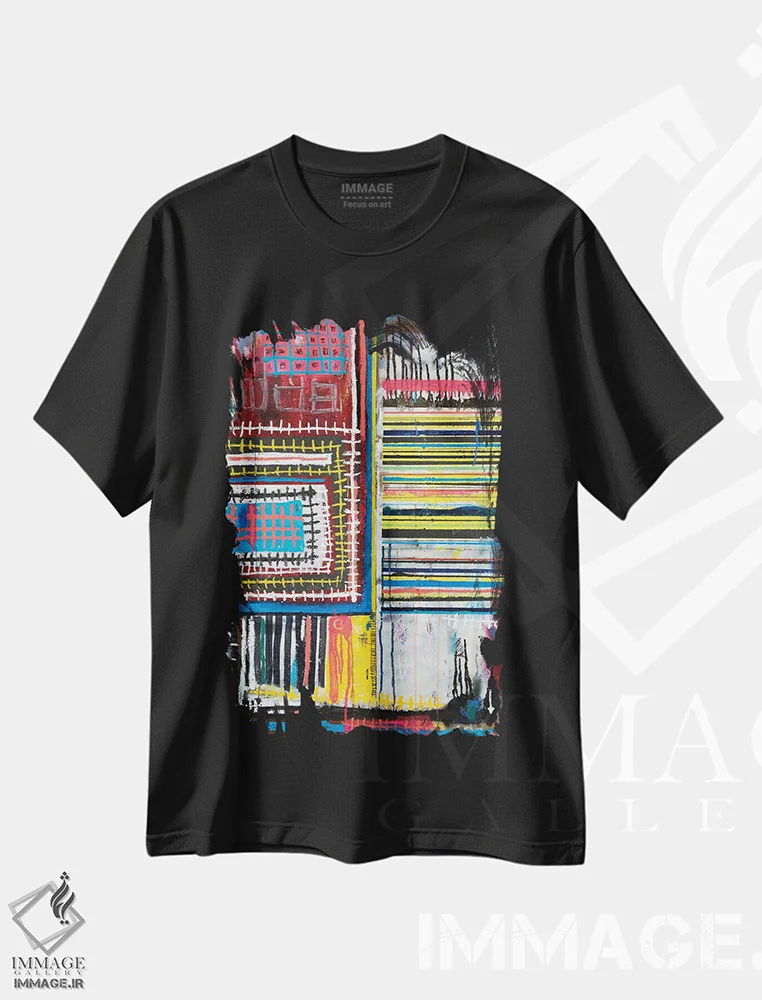 تیشرت مشکی طرح دار پنج در سه، دکوراسیون جایگزین اثر اددی لاو | فروشگاه ایماژ تیشرت طرح دار پنج در سه اثر اددی لاو