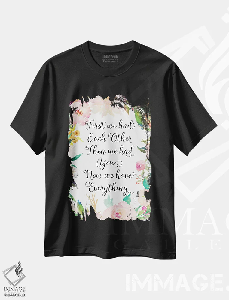 تیشرت مشکی طرح دار آثار ادن پرینتیبلز - immage.ir تیشرت طرح دار اول ما همدیگر را داشتیم، بعد تو را داشتیم، حالا همه چیز داریم اثر ادن پرینتیبلز