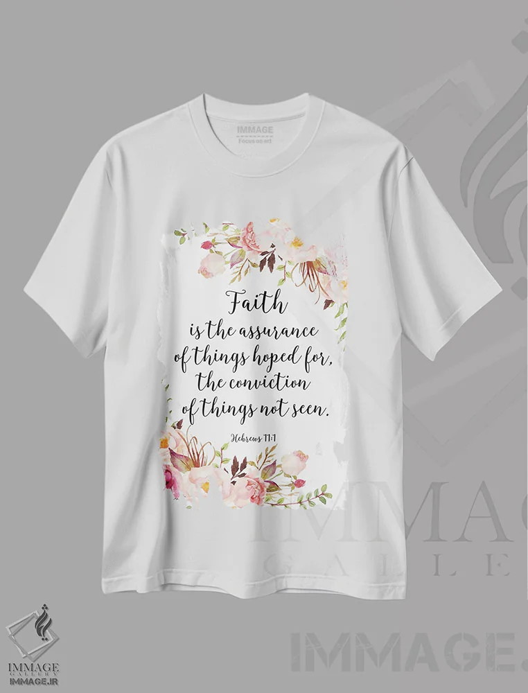 تیشرت سفید طرح دار عبرانیان ۱۱:۱، تزئینی اثر ادن پرینتیبلز | فروشگاه ایماژ تیشرت طرح دار عبرانیان :اثر ادن پرینتیبلز
