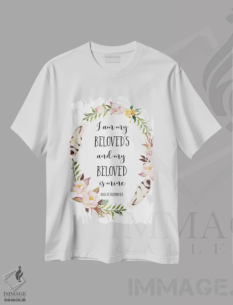 تیشرت سفید طرح دار آثار ادن پرینتیبلز - immage.ir تیشرت طرح دار محبوب از آنِ من است و من از آنِ اویم، غزل غزل های سلیمان :اثر ادن پرینتیبلز