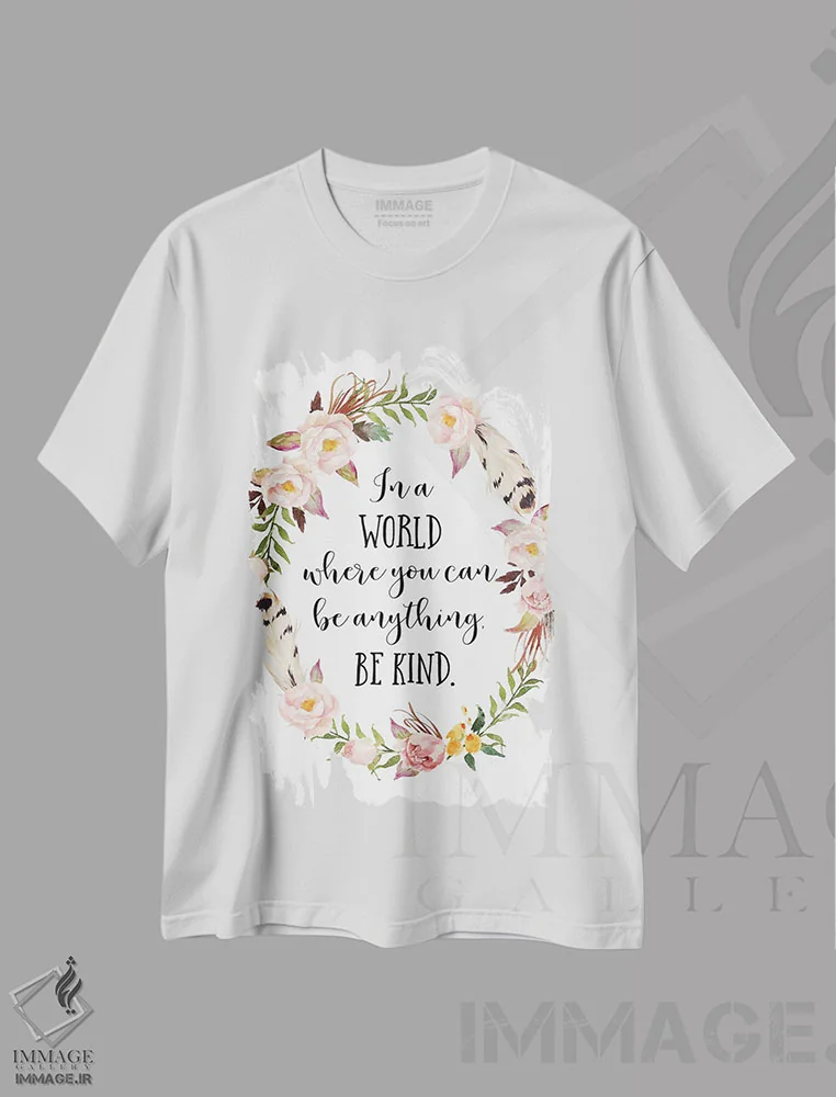 تیشرت سفید طرح دار در دنیایی که می توانی هر کسی باشی، مهربان باش، تزئینی اثر ادن پرینتیبلز | فروشگاه ایماژ تیشرت طرح دار در دنیایی که می توانی هر کسی باشی، مهربان باش اثر ادن پرینتیبلز