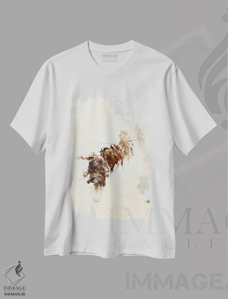 تیشرت سفید طرح دار تله گذاران کوهستان، هنر فاخر اثر ارنست چیریاکا | فروشگاه ایماژ