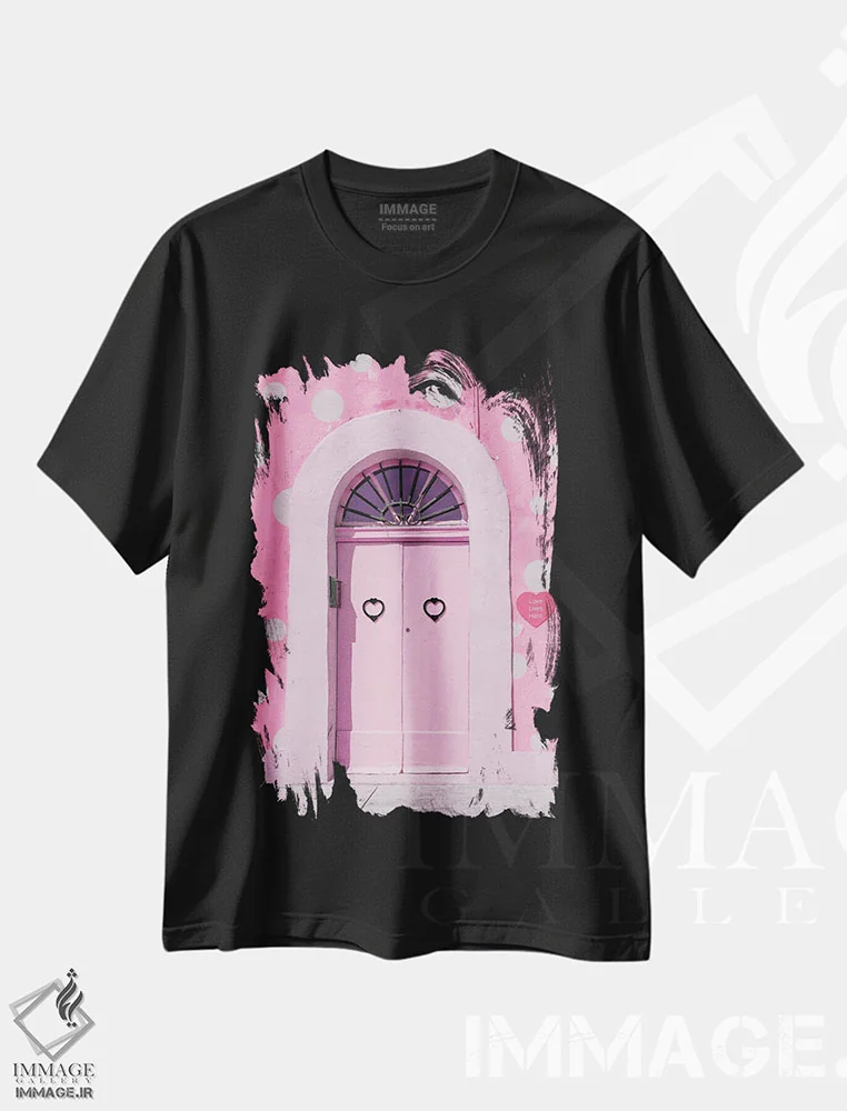 تیشرت مشکی طرح دار مسافرخانه عشق، باربیکور اثر ارین سامر | فروشگاه ایماژ تیشرت طرح دار مسافرخانه عشق اثر ارین سامر