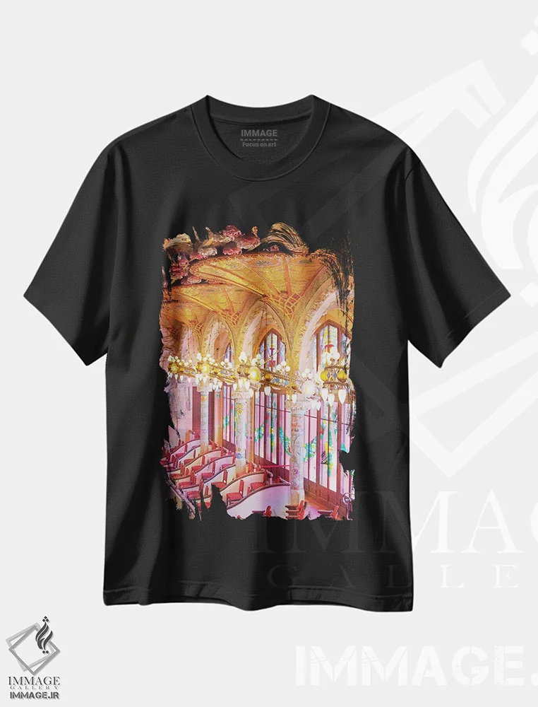 تیشرت مشکی طرح دار کاخ موسیقی بارسلونا، مدیوم اثر ارین سامر | فروشگاه ایماژ تیشرت طرح دار کاخ موسیقی بارسلونا اثر ارین سامر