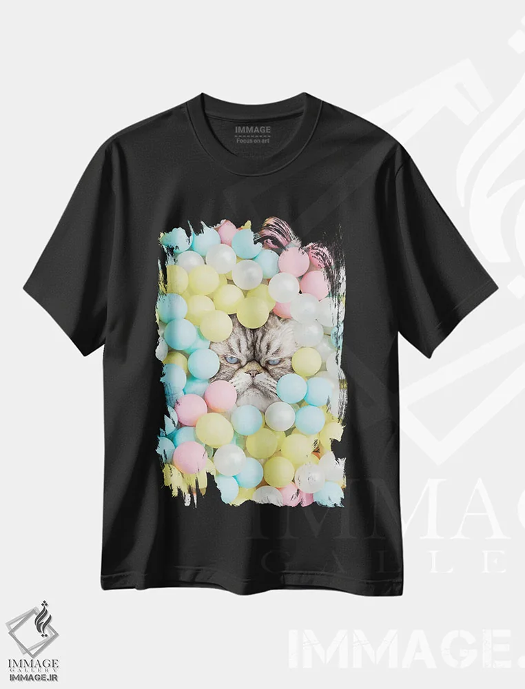 تیشرت مشکی طرح دار گربه منشی، عکاسی ترکیبی اثر ارین سامر | فروشگاه ایماژ تیشرت طرح دار گربه منشی اثر ارین سامر