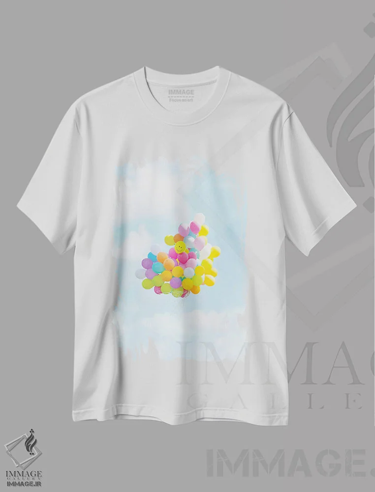 تیشرت سفید طرح دار خوشحالم که اینجا هستم، عکاسی ترکیبی اثر ارین سامر | فروشگاه ایماژ تیشرت طرح دار خوشحالم که اینجا هستم اثر ارین سامر