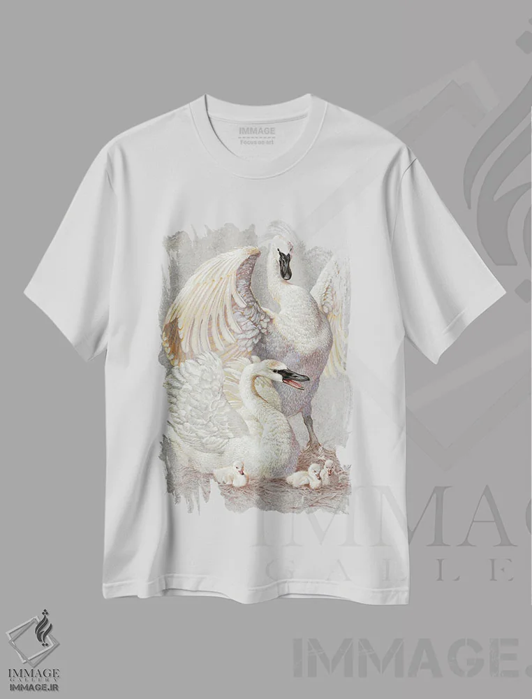 تیشرت سفید طرح دار مرغ های مگس خوار سیاه گلو، تزئینی اثر ازرا تاکر | فروشگاه ایماژ تیشرت طرح دار مرغ های مگس خوار سیاه گلو اثر ازرا تاکر
