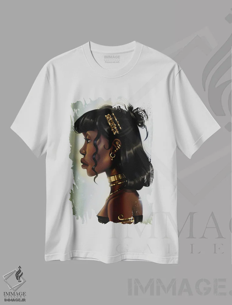 تیشرت سفید طرح دار ملکهٔ جوان، هنر آمریکایی آفریقایی تبار اثر استر لا مین دور | فروشگاه ایماژ تیشرت طرح دار ملکهٔ جوان اثر استر لا مین دور