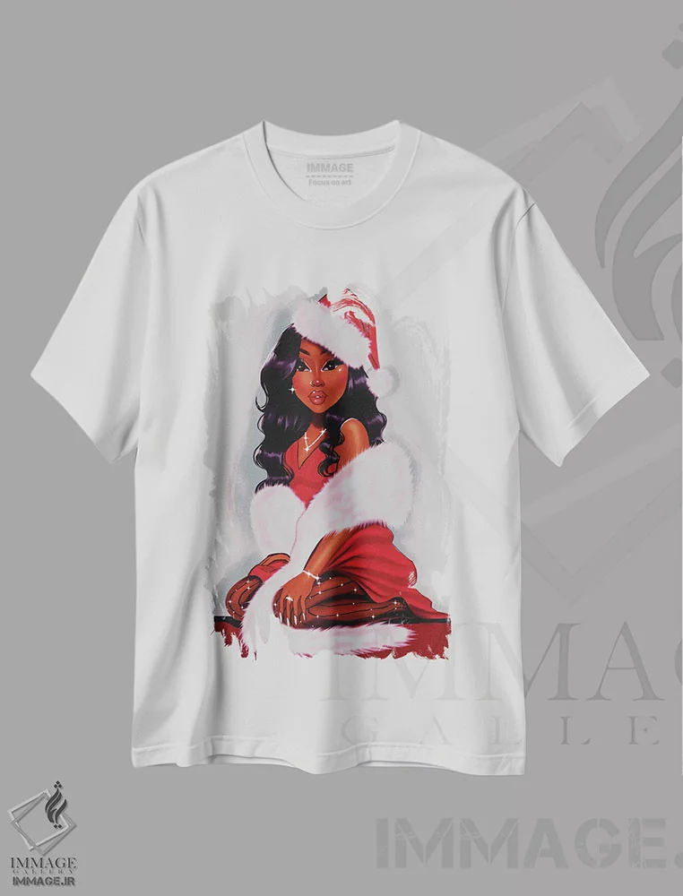 تیشرت سفید طرح دار دختر دسامبری، هنر آمریکایی آفریقایی تبار اثر استر لا مین دور | فروشگاه ایماژ تیشرت طرح دار دختر دسامبری اثر استر لا مین دور