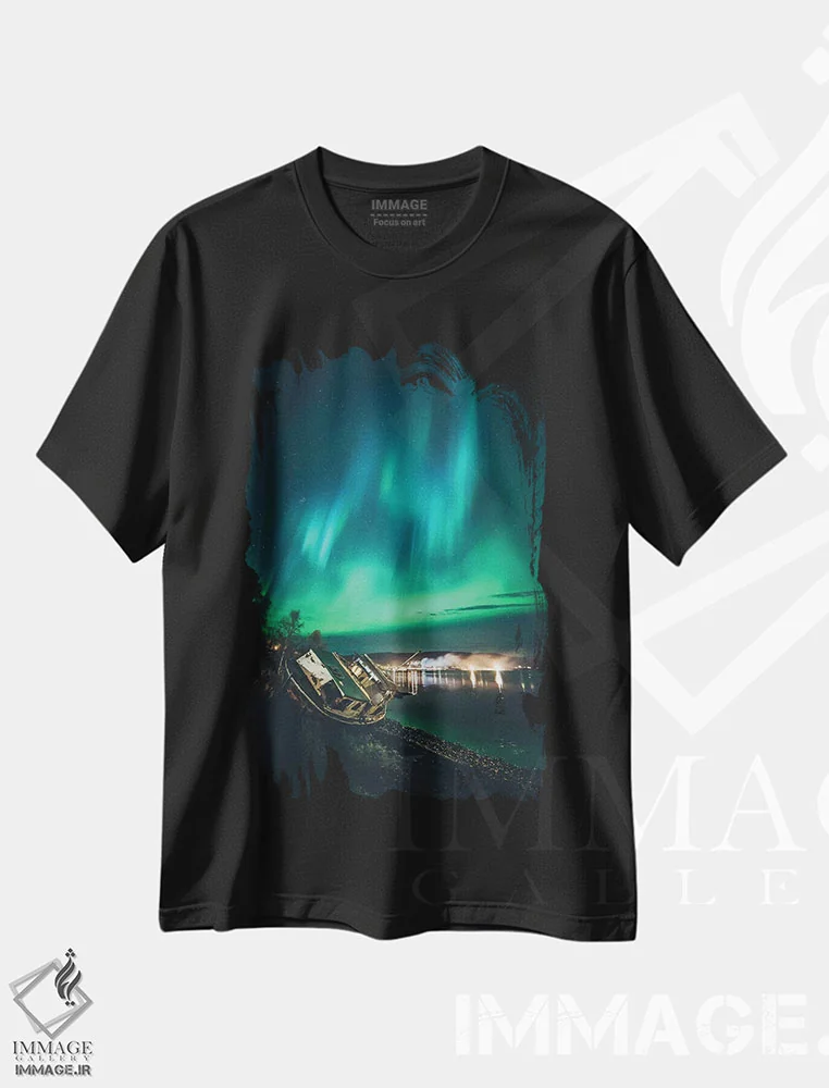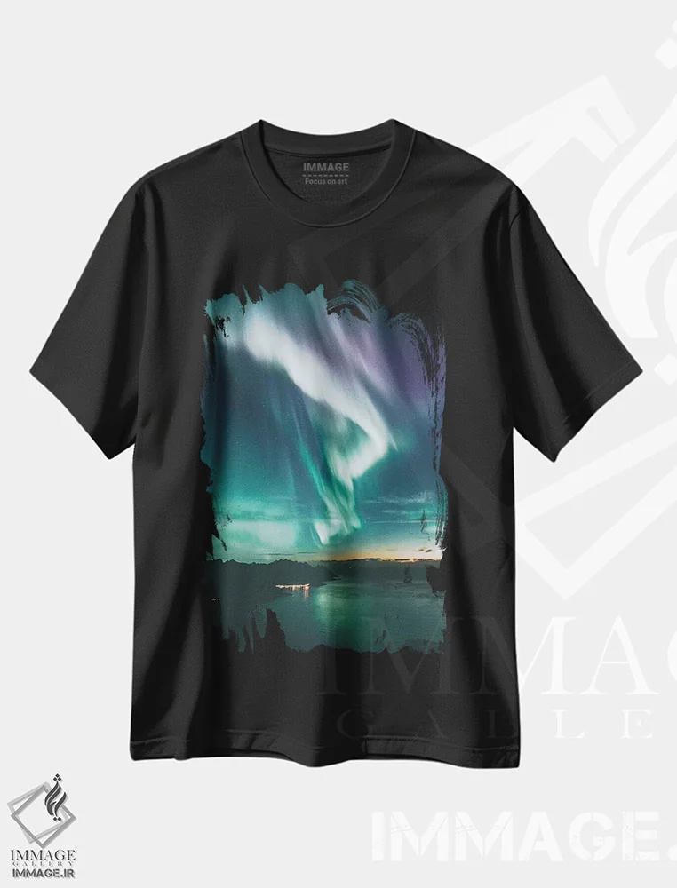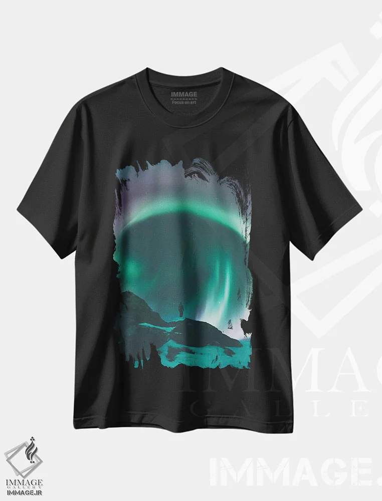 تیشرت مشکی طرح دار شفق قطبی اوتِرتیند، مدیوم اثر استفن فوس بک | فروشگاه ایماژ تیشرت طرح دار شفق قطبی اوتِرتیند اثر استفن فوس بک