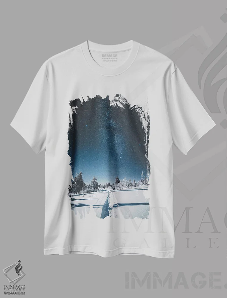 تیشرت سفید طرح دار هاله شفق قطبی، مدیوم اثر استفن فوس بک | فروشگاه ایماژ تیشرت طرح دار هاله شفق قطبی اثر استفن فوس بک