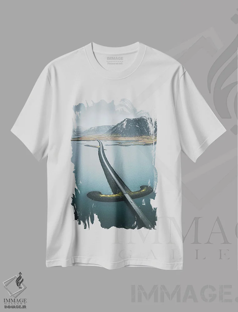 تیشرت سفید طرح دار جادهٔ شمشیر ایسلند I، مدیوم اثر استفن فوس بک | فروشگاه ایماژ تیشرت طرح دار جادهٔ شمشیر ایسلند I اثر استفن فوس بک