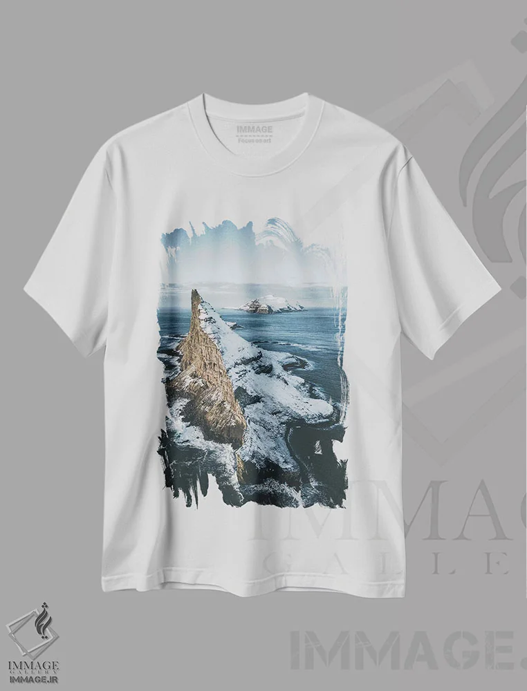 تیشرت سفید طرح دار مناظری از فارو، مدیوم اثر استفن فوس بک | فروشگاه ایماژ تیشرت طرح دار مناظری از فارو اثر استفن فوس بک