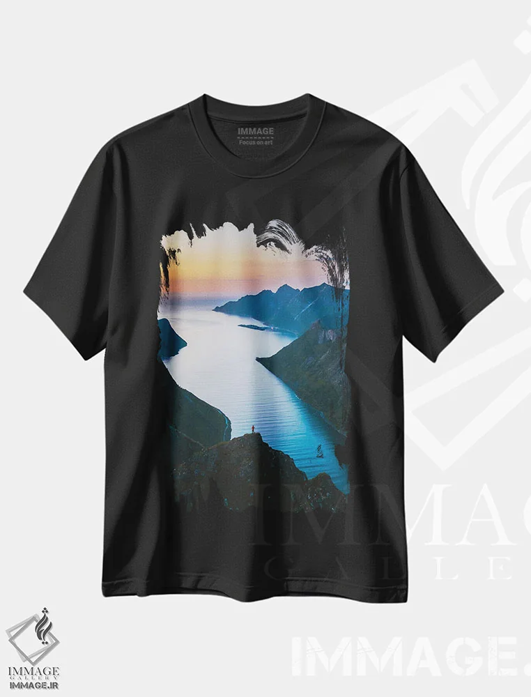 تیشرت مشکی طرح دار فیوردهای سنیا، مدیوم اثر استفن فوس بک | فروشگاه ایماژ تیشرت طرح دار فیوردهای سنیا اثر استفن فوس بک
