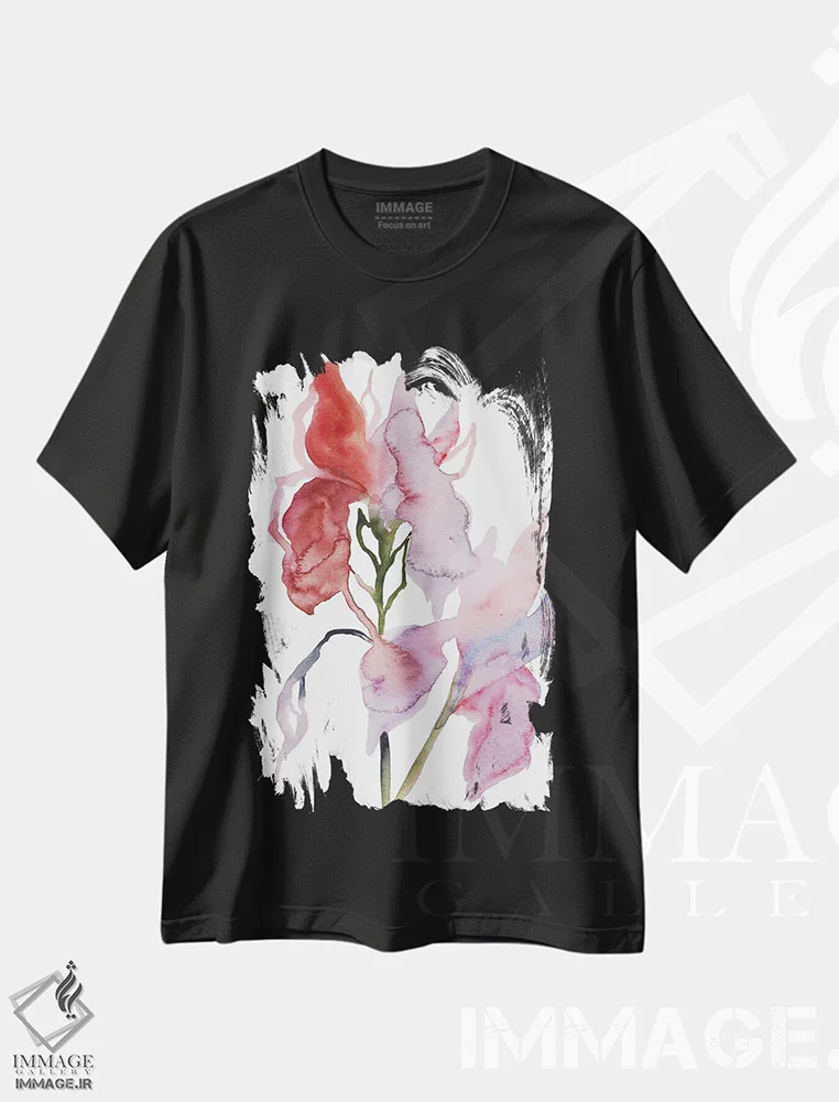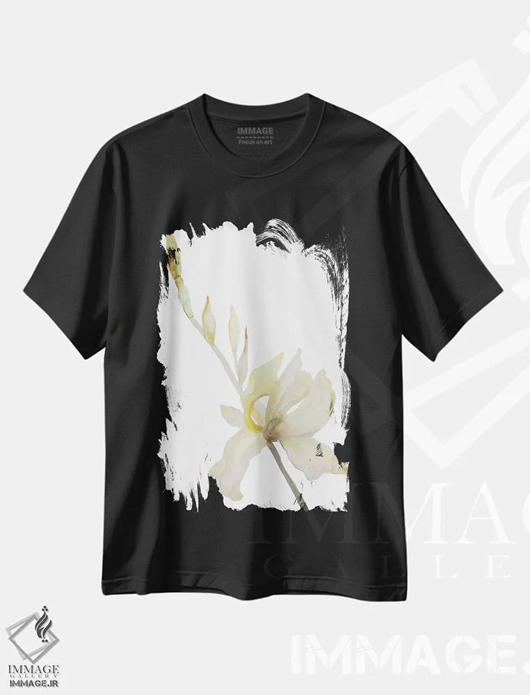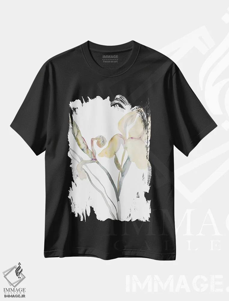 تیشرت مشکی طرح دار زنبق شمارهٔ ۱۸۲، هنر فاخر معاصر اثر الیزابت بکر | فروشگاه ایماژ تیشرت طرح دار زنبق شمارهٔ اثر الیزابت بکر