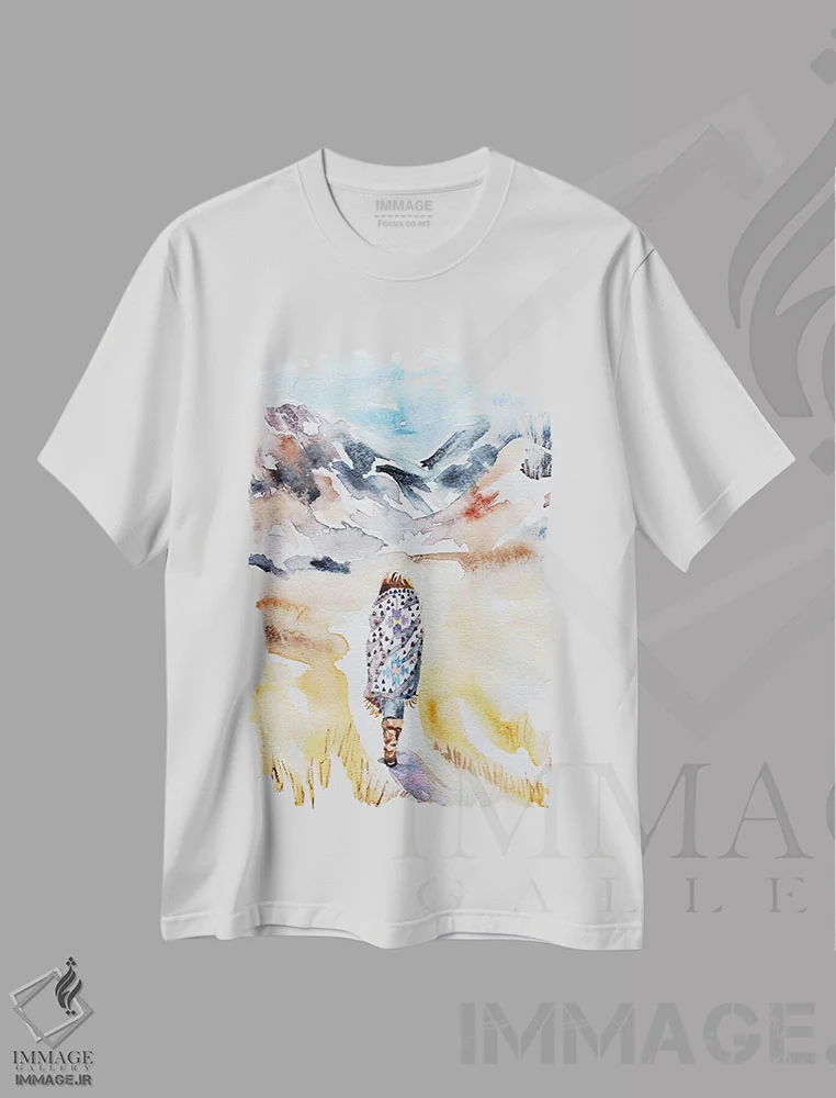 تیشرت سفید طرح دار سرگردان، هنر فاخر معاصر اثر الیزابت بکر | فروشگاه ایماژ تیشرت طرح دار سرگردان اثر الیزابت بکر