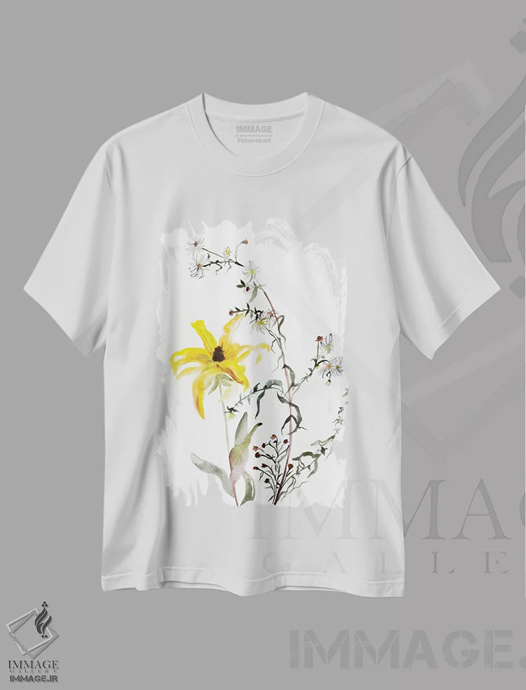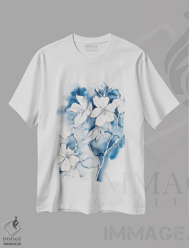 تیشرت سفید طرح دار گل دار شمارهٔ ۸، هنر فاخر معاصر اثر الیزابت بکر | فروشگاه ایماژ تیشرت طرح دار گل دار شمارهٔ اثر الیزابت بکر