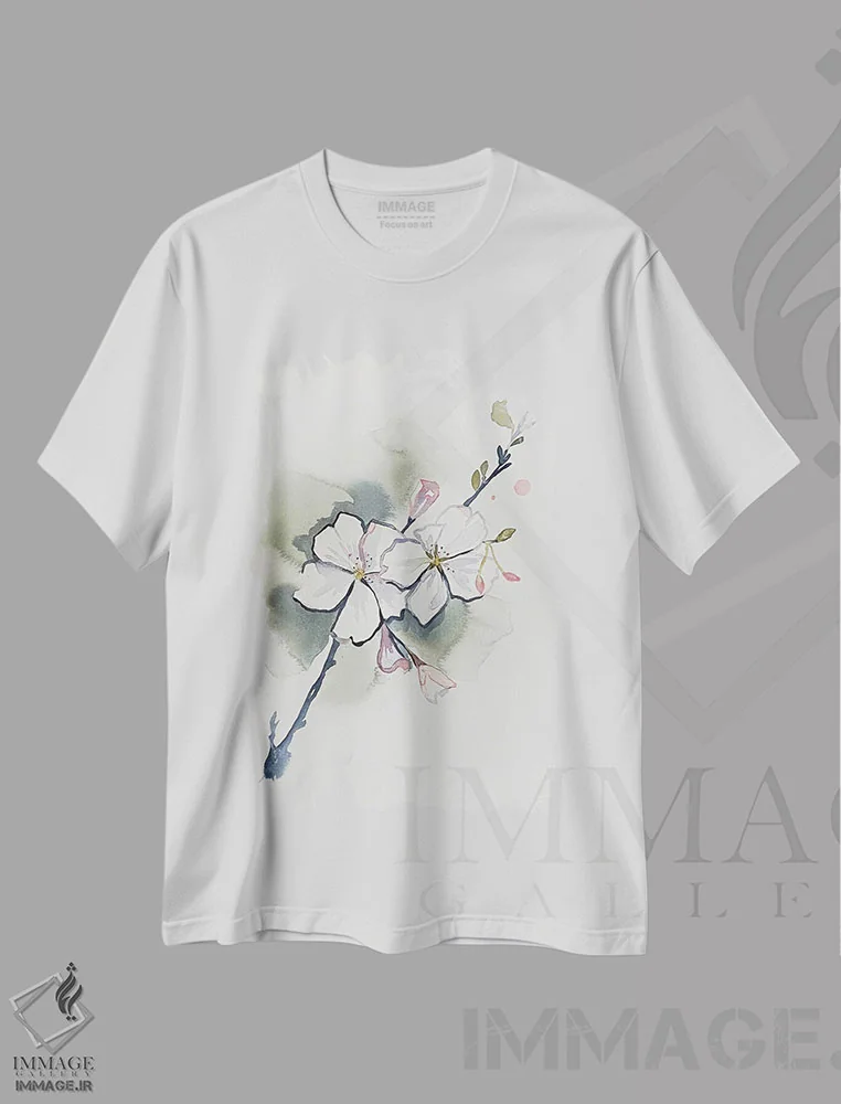 تیشرت سفید طرح دار شکوفهٔ گیلاس شمارهٔ ۳۶، هنر فاخر معاصر اثر الیزابت بکر | فروشگاه ایماژ تیشرت طرح دار شکوفهٔ گیلاس شمارهٔ اثر الیزابت بکر