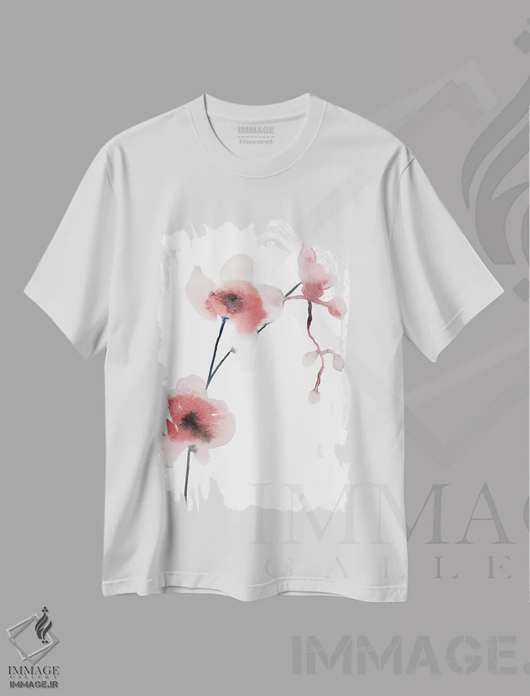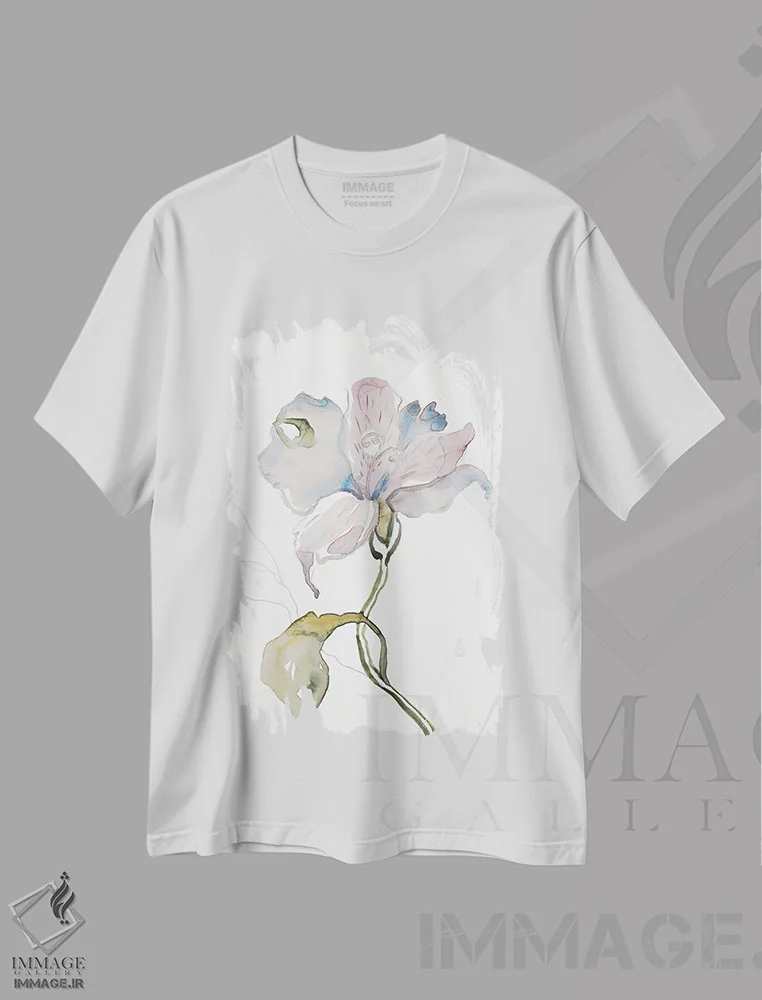 تیشرت سفید طرح دار شقایق شمارهٔ ۴، هنر فاخر معاصر اثر الیزابت بکر | فروشگاه ایماژ تیشرت طرح دار شقایق شمارهٔ اثر الیزابت بکر