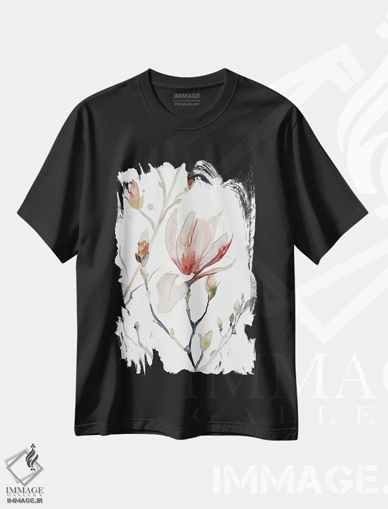 تیشرت مشکی طرح دار ماگنولیا شمارهٔ ۵۵، هنر فاخر معاصر اثر الیزابت بکر | فروشگاه ایماژ تیشرت طرح دار ماگنولیا شمارهٔ اثر الیزابت بکر