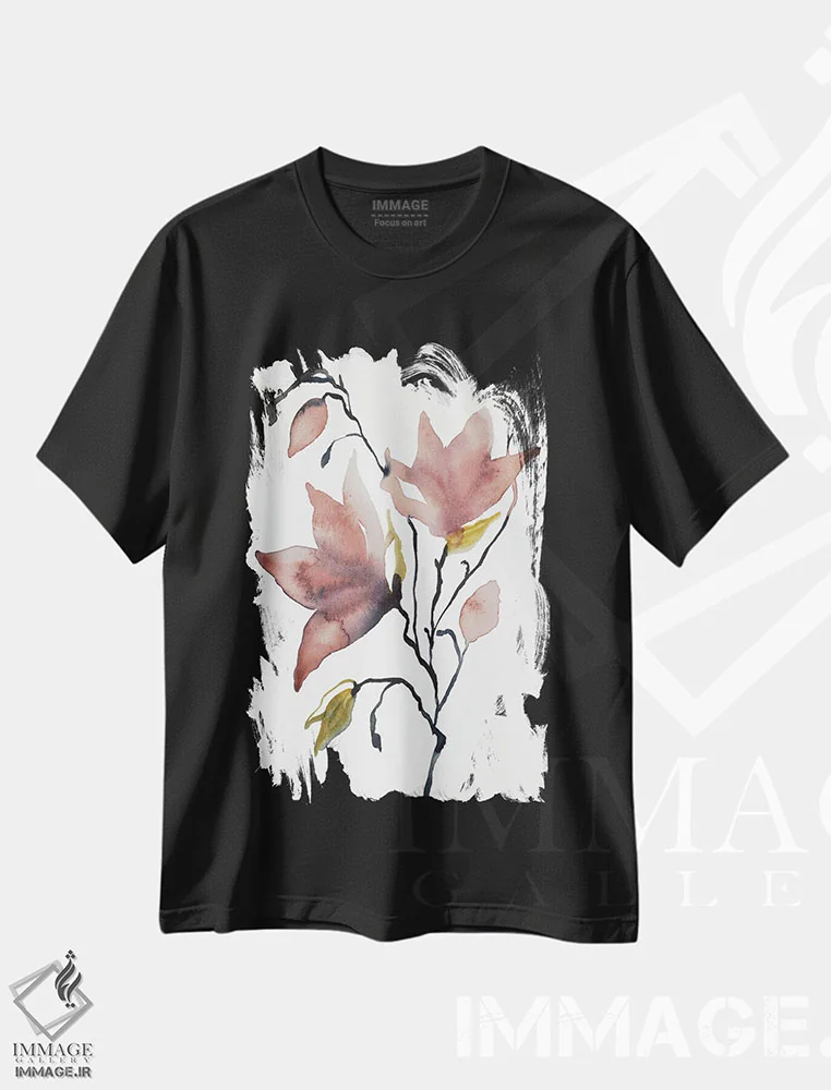 تیشرت مشکی طرح دار ماگنولیا شمارهٔ ۵۲، هنر فاخر معاصر اثر الیزابت بکر | فروشگاه ایماژ تیشرت طرح دار ماگنولیا شمارهٔ اثر الیزابت بکر