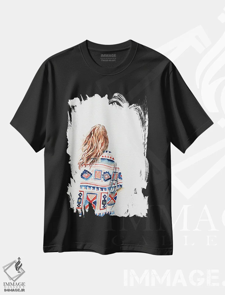 تیشرت مشکی طرح دار خانم نقاشی شده، هنر فاخر معاصر اثر الیزابت بکر | فروشگاه ایماژ تیشرت طرح دار خانم نقاشی شده اثر الیزابت بکر